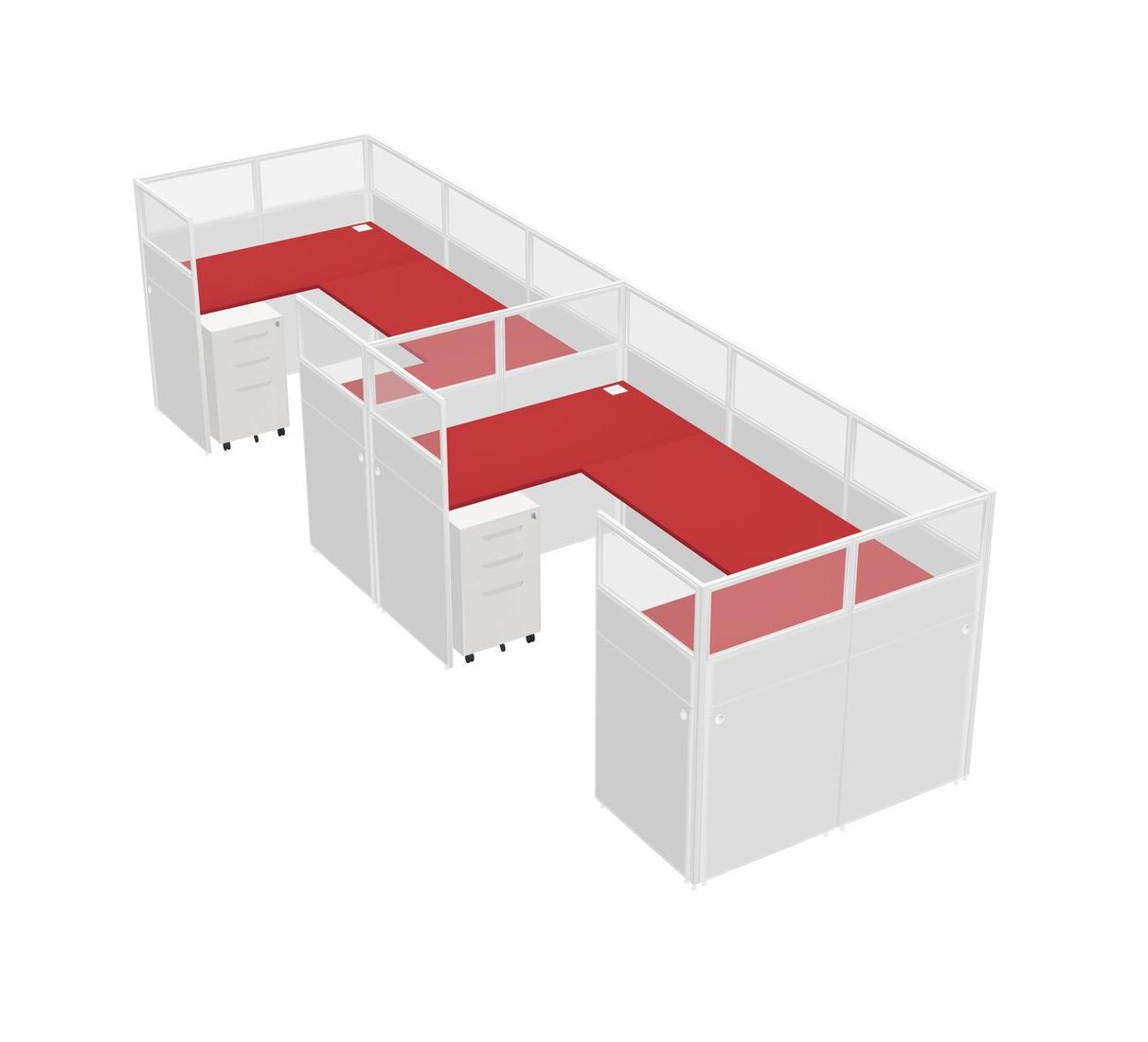 Prism Red U-shaped Panel System For 2 Person + Metal Mobile Drawers For 2 User(s)