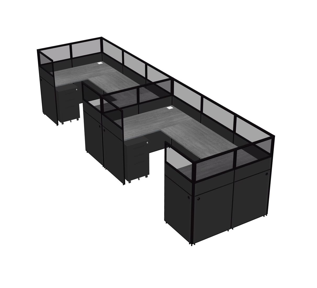 Grey U-shaped Panel System For 2 Person + Metal Mobile Drawers For 2 User(s)