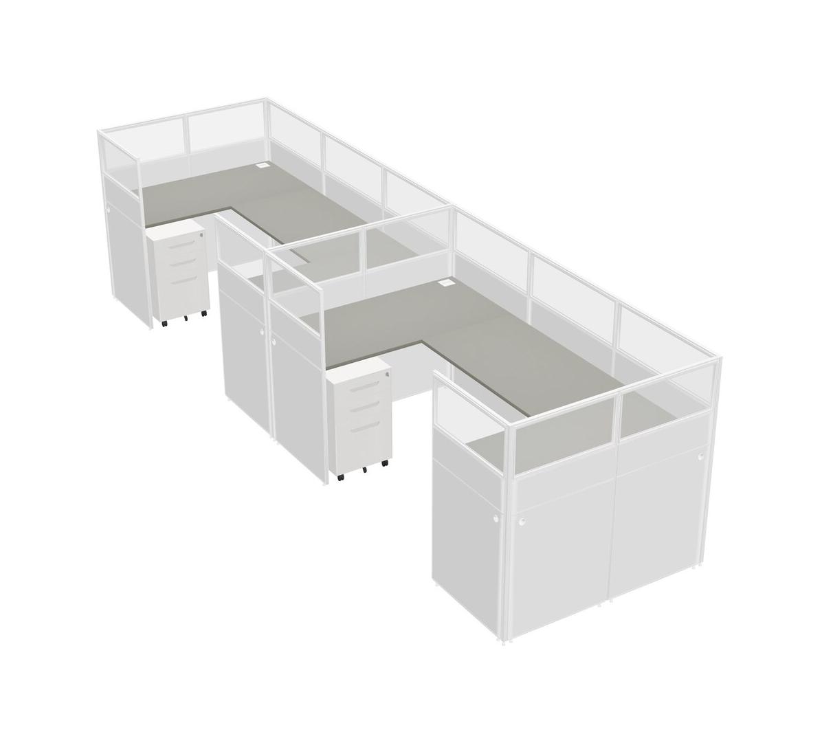 Grey Shadows U-shaped Panel System For 2 Person + Metal Mobile Drawers For 2 User(s)