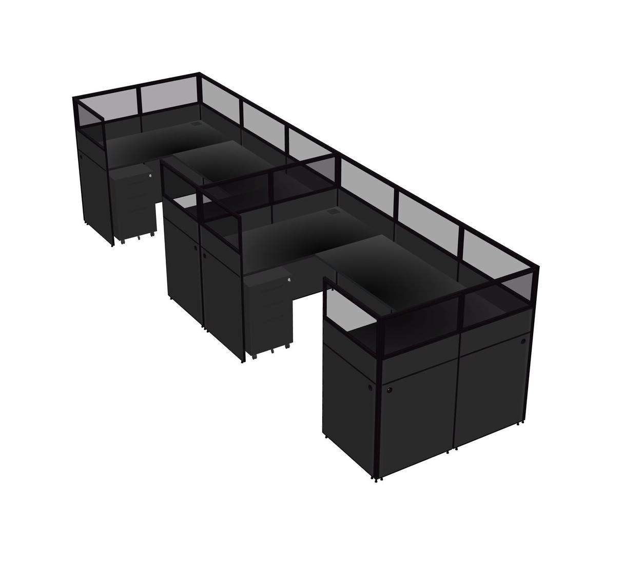 Black U-shaped Panel System For 2 Person + Metal Mobile Drawers For 2 User(s)
