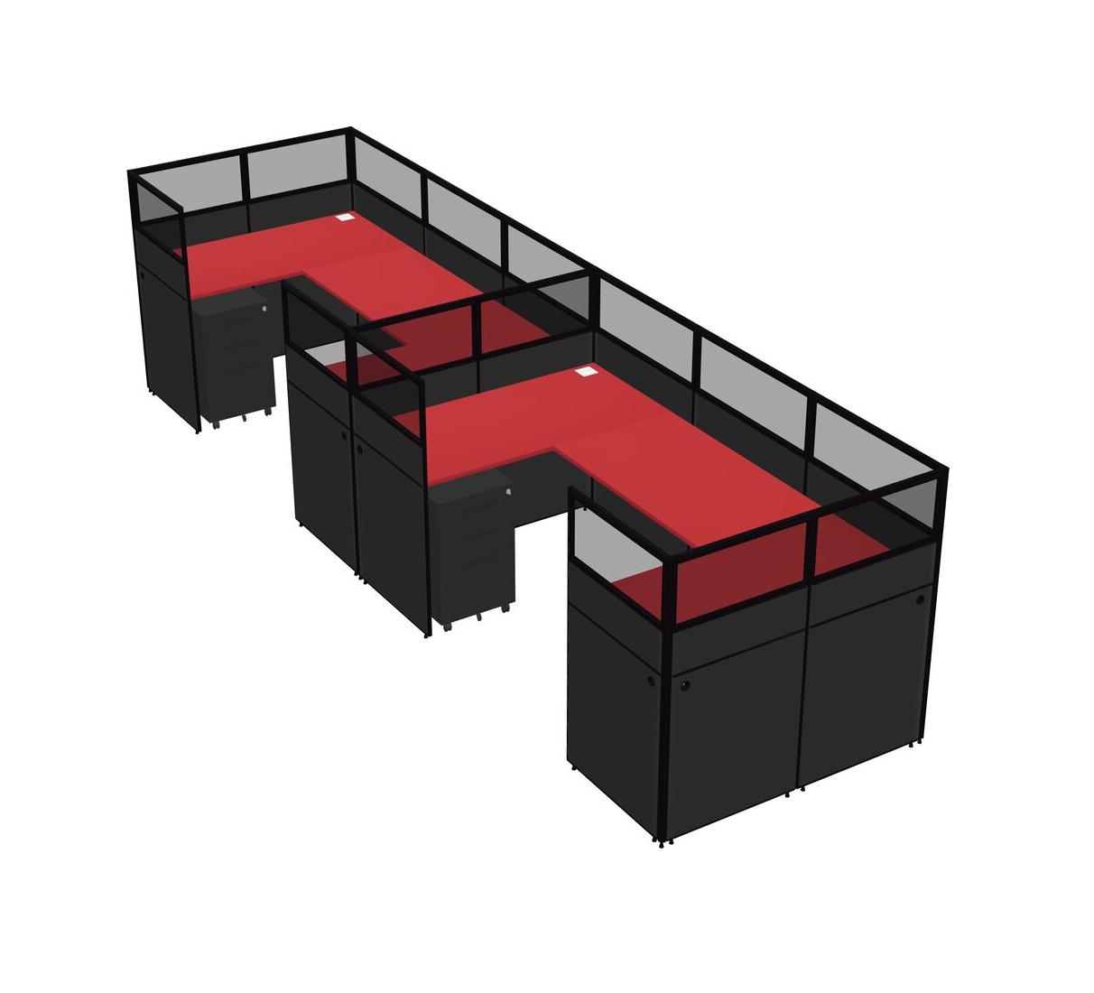 Prism Red U-shaped Panel System For 2 Person + Metal Mobile Drawers For 2 User(s)