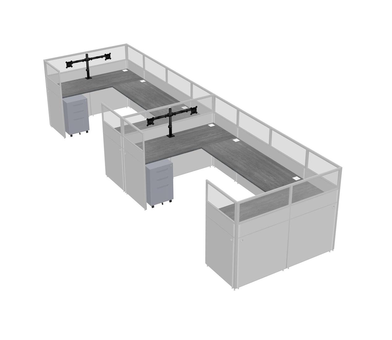 Grey U-shaped Panel System For 2 Person + Monitor Arm (double Arms) + Metal Mobile Drawers For 2 User(s)