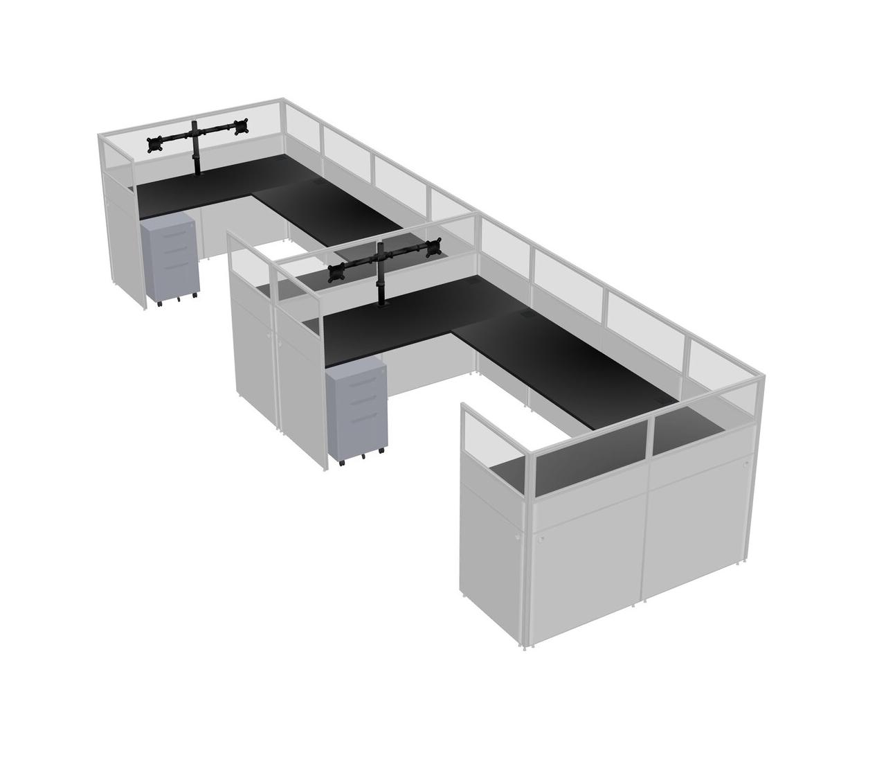 Black U-shaped Panel System For 2 Person + Monitor Arm (double Arms) + Metal Mobile Drawers For 2 User(s)