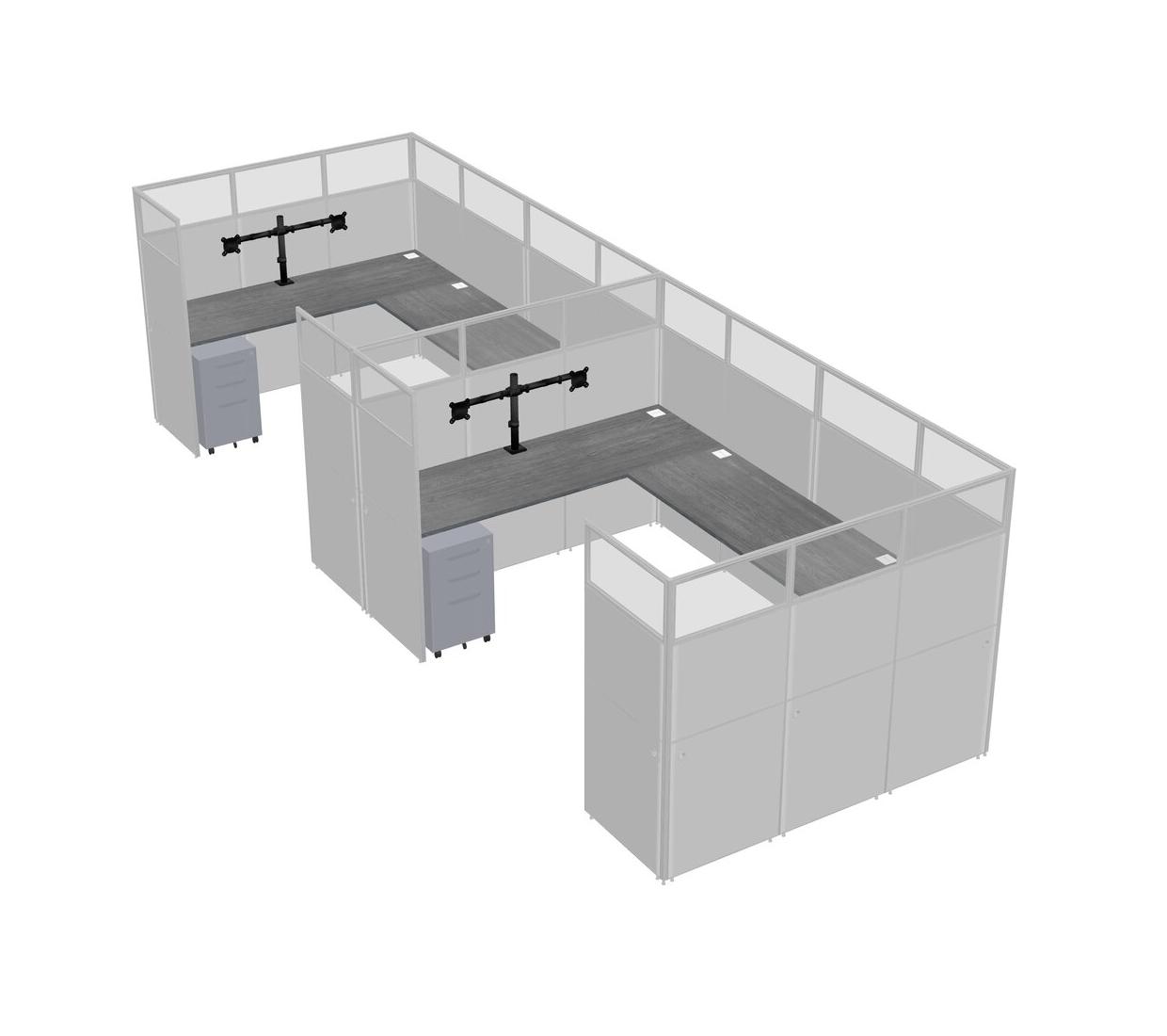 Grey U-shaped Panel System For 2 Person + Monitor Arm (double Arms) + Metal Mobile Drawers For 2 User(s)