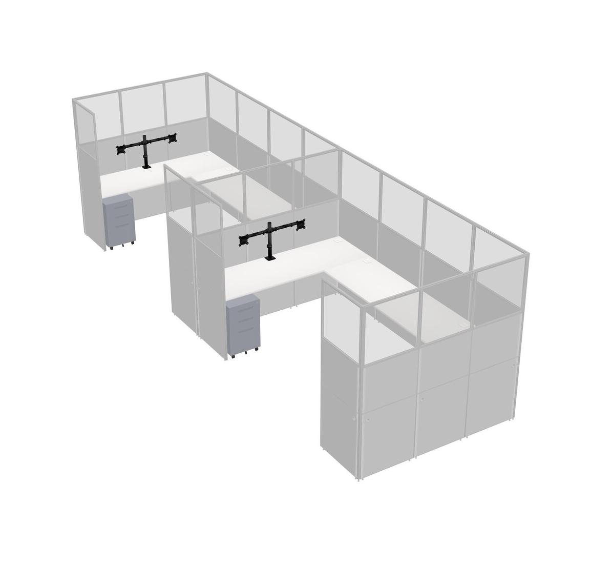 White U-shaped Panel System For 2 Person + Monitor Arm (double Arms) + Metal Mobile Drawers For 2 User(s)