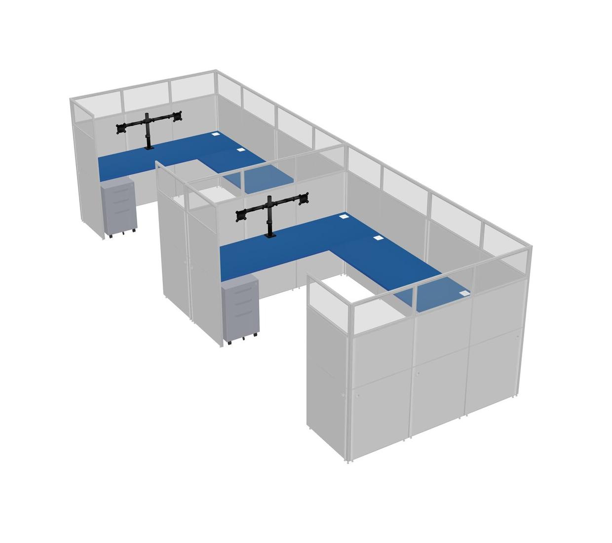 Prism Blue U-shaped Panel System For 2 Person + Monitor Arm (double Arms) + Metal Mobile Drawers For 2 User(s)