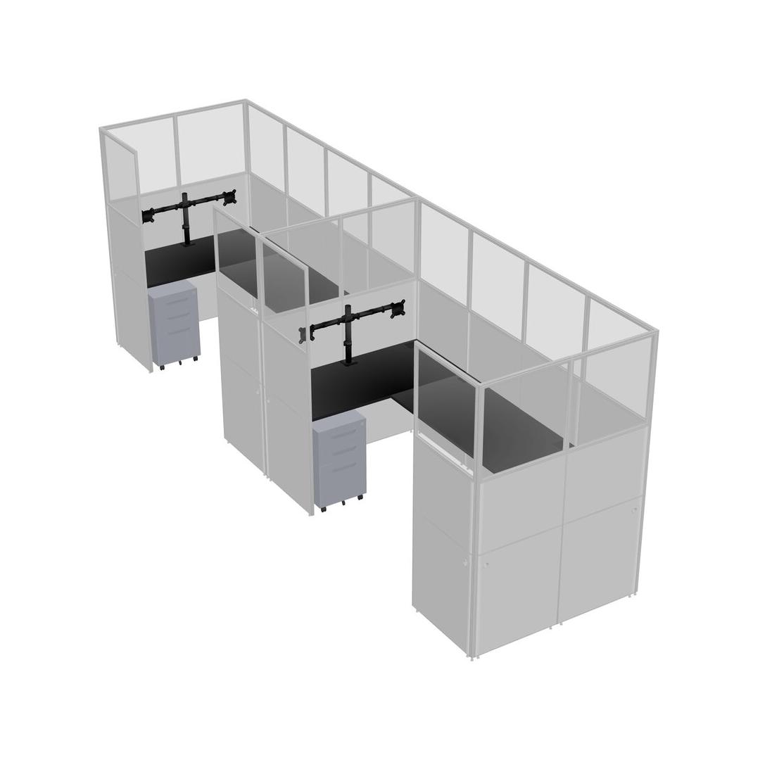 Black U-shaped Panel System For 2 Person + Monitor Arm (double Arms) + Metal Mobile Drawers For 2 User(s)