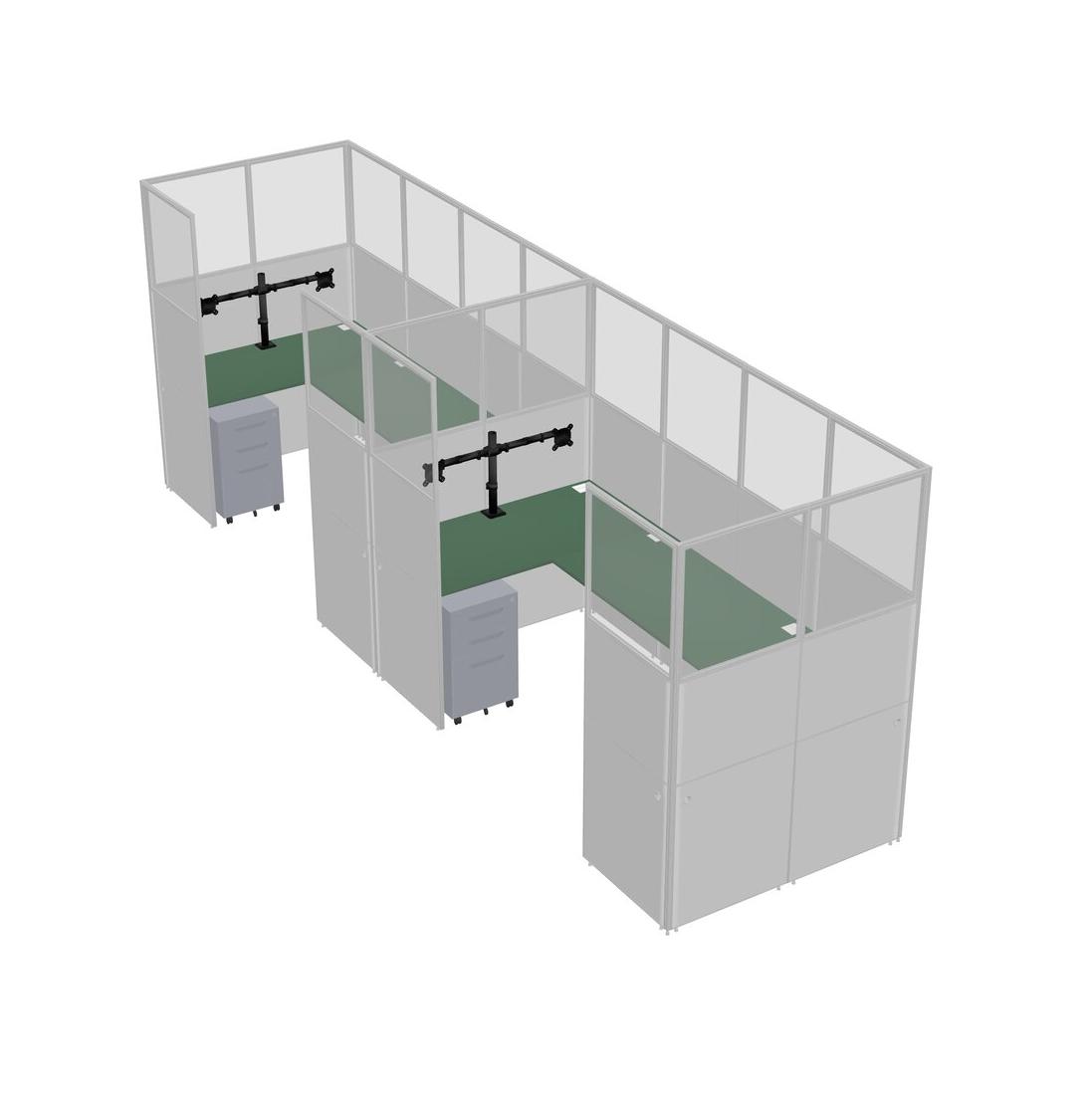 Green U-shaped Panel System For 2 Person + Monitor Arm (double Arms) + Metal Mobile Drawers For 2 User(s)
