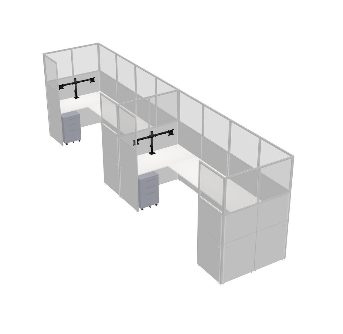 White U-shaped Panel System For 2 Person + Monitor Arm (double Arms) + Metal Mobile Drawers For 2 User(s)