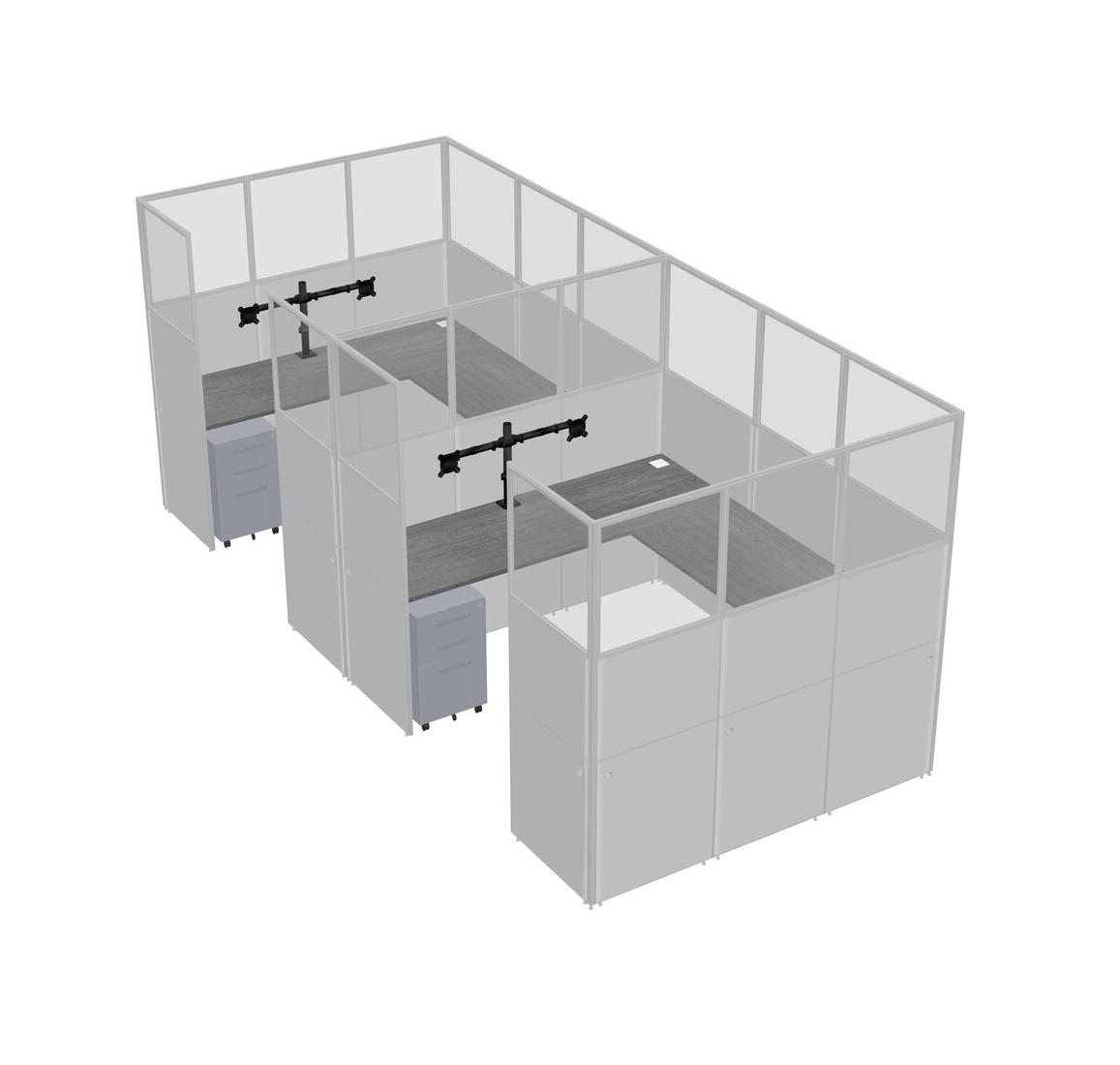 Grey U-shaped Panel System For 2 Person + Monitor Arm (double Arms) + Metal Mobile Drawers For 2 User(s)