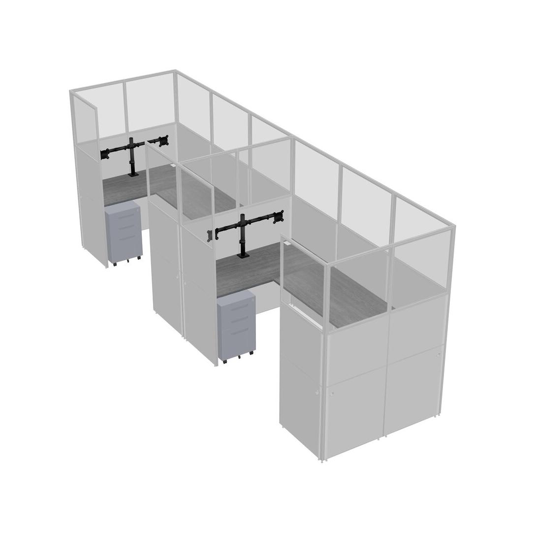 Grey U-shaped Panel System For 2 Person + Monitor Arm (double Arms) + Metal Mobile Drawers For 2 User(s)