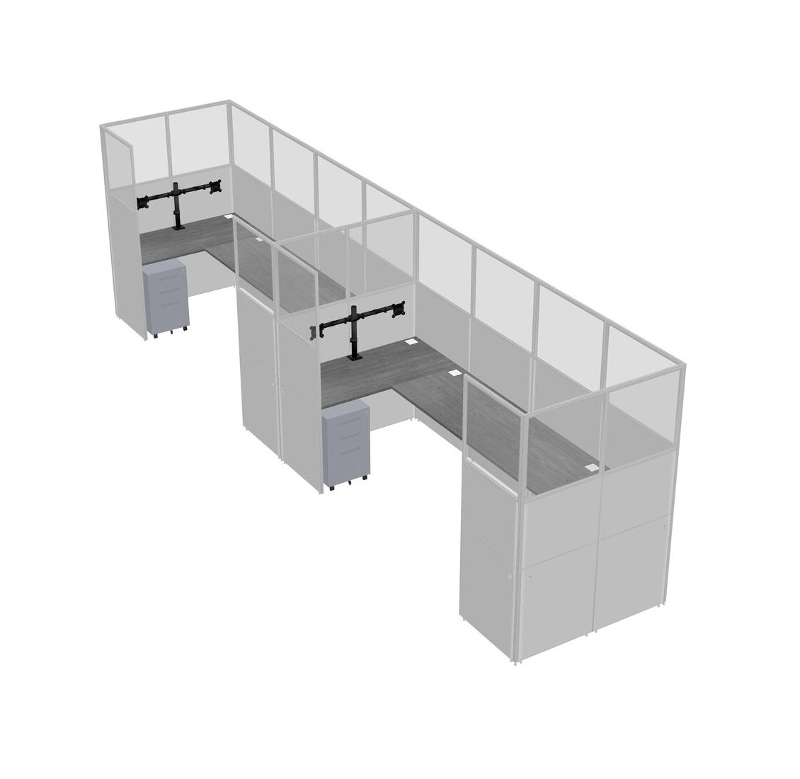 Grey U-shaped Panel System For 2 Person + Monitor Arm (double Arms) + Metal Mobile Drawers For 2 User(s)