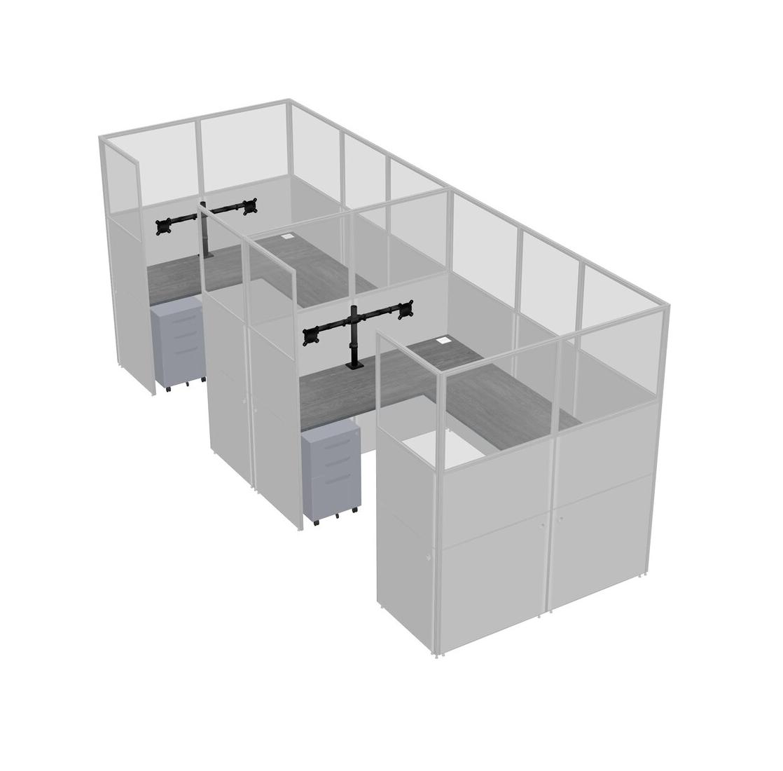 Grey U-shaped Panel System For 2 Person + Monitor Arm (double Arms) + Metal Mobile Drawers For 2 User(s)