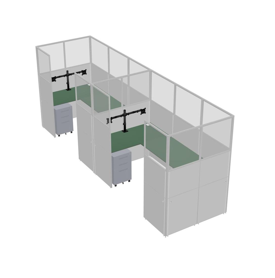 Green U-shaped Panel System For 2 Person + Monitor Arm (double Arms) + Metal Mobile Drawers For 2 User(s)