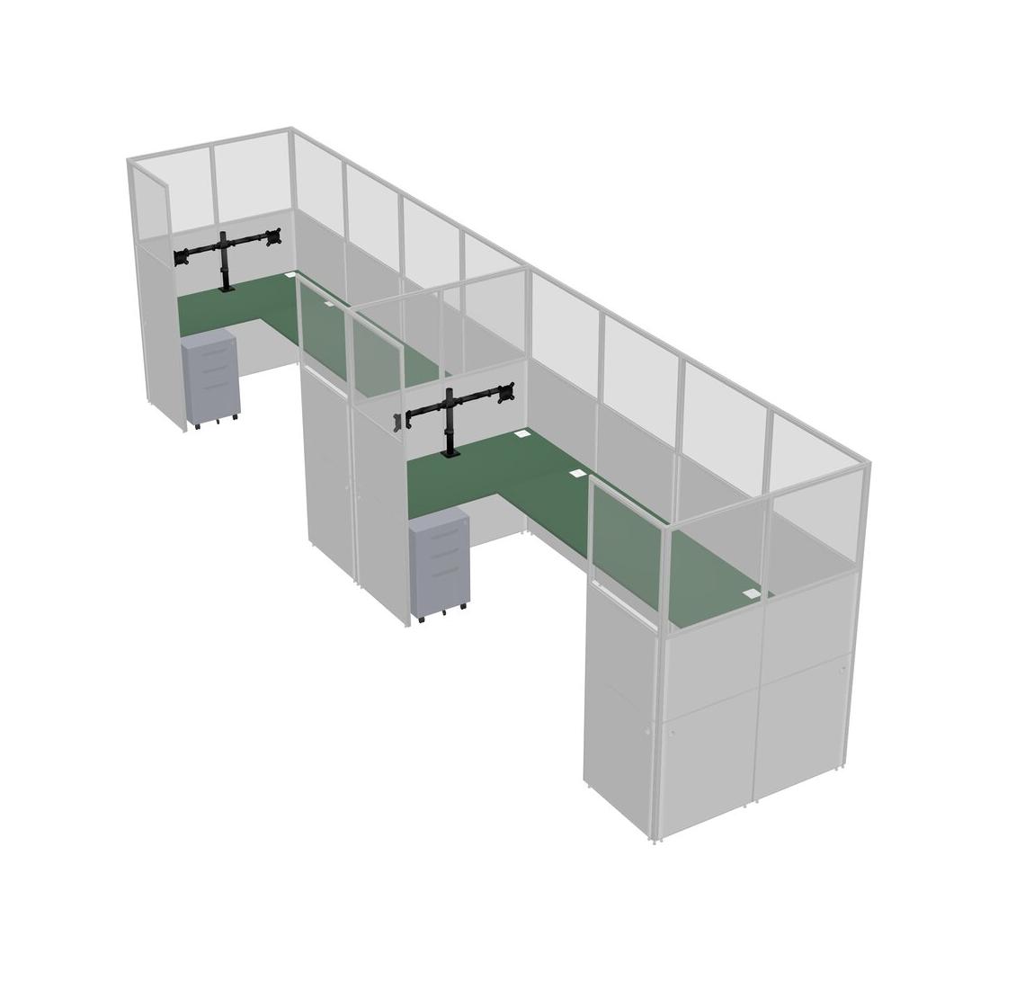 Green U-shaped Panel System For 2 Person + Monitor Arm (double Arms) + Metal Mobile Drawers For 2 User(s)
