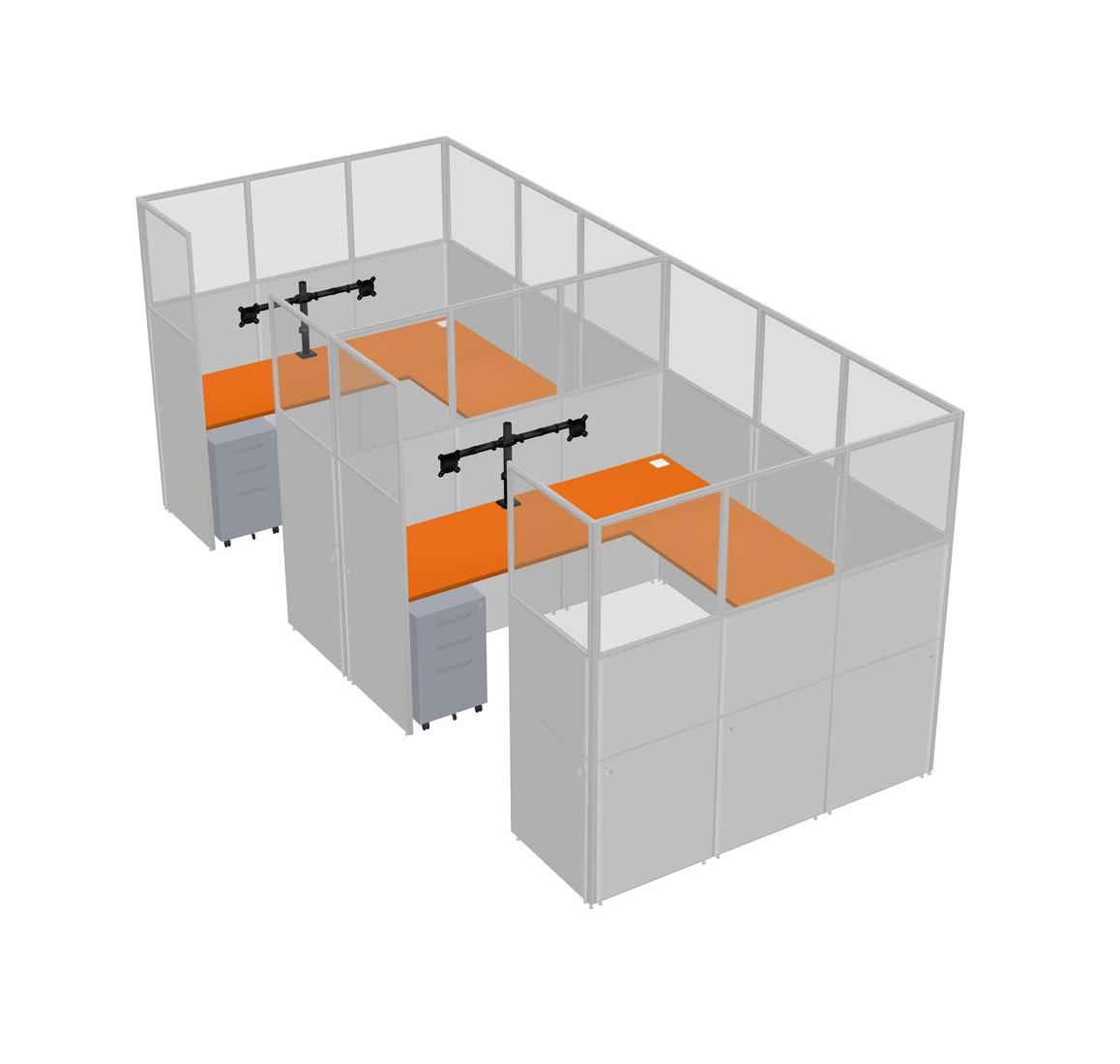 Orange U-shaped Panel System For 2 Person + Monitor Arm (double Arms) + Metal Mobile Drawers For 2 User(s)