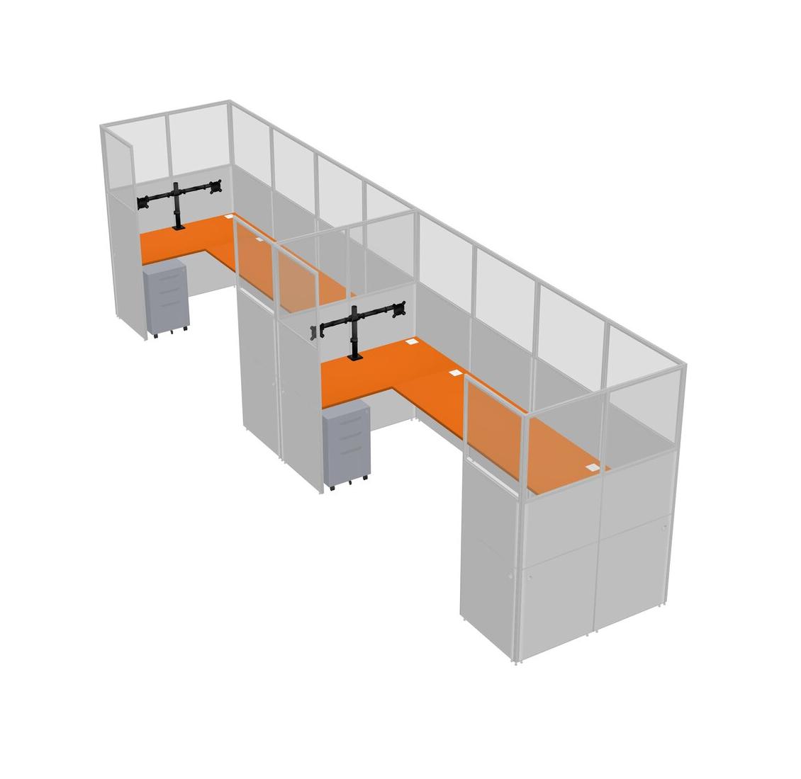 Orange U-shaped Panel System For 2 Person + Monitor Arm (double Arms) + Metal Mobile Drawers For 2 User(s)