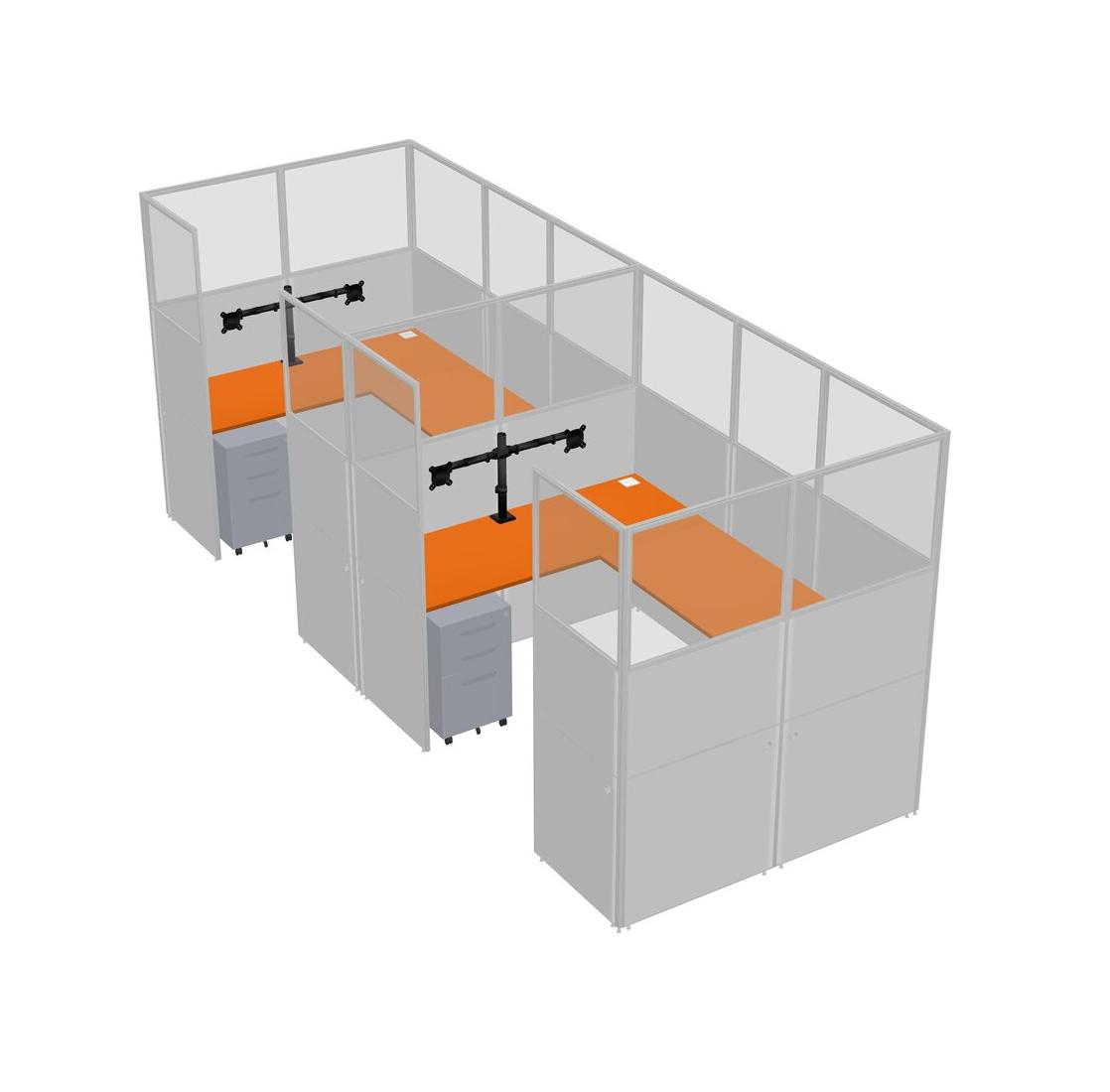 Orange U-shaped Panel System For 2 Person + Monitor Arm (double Arms) + Metal Mobile Drawers For 2 User(s)