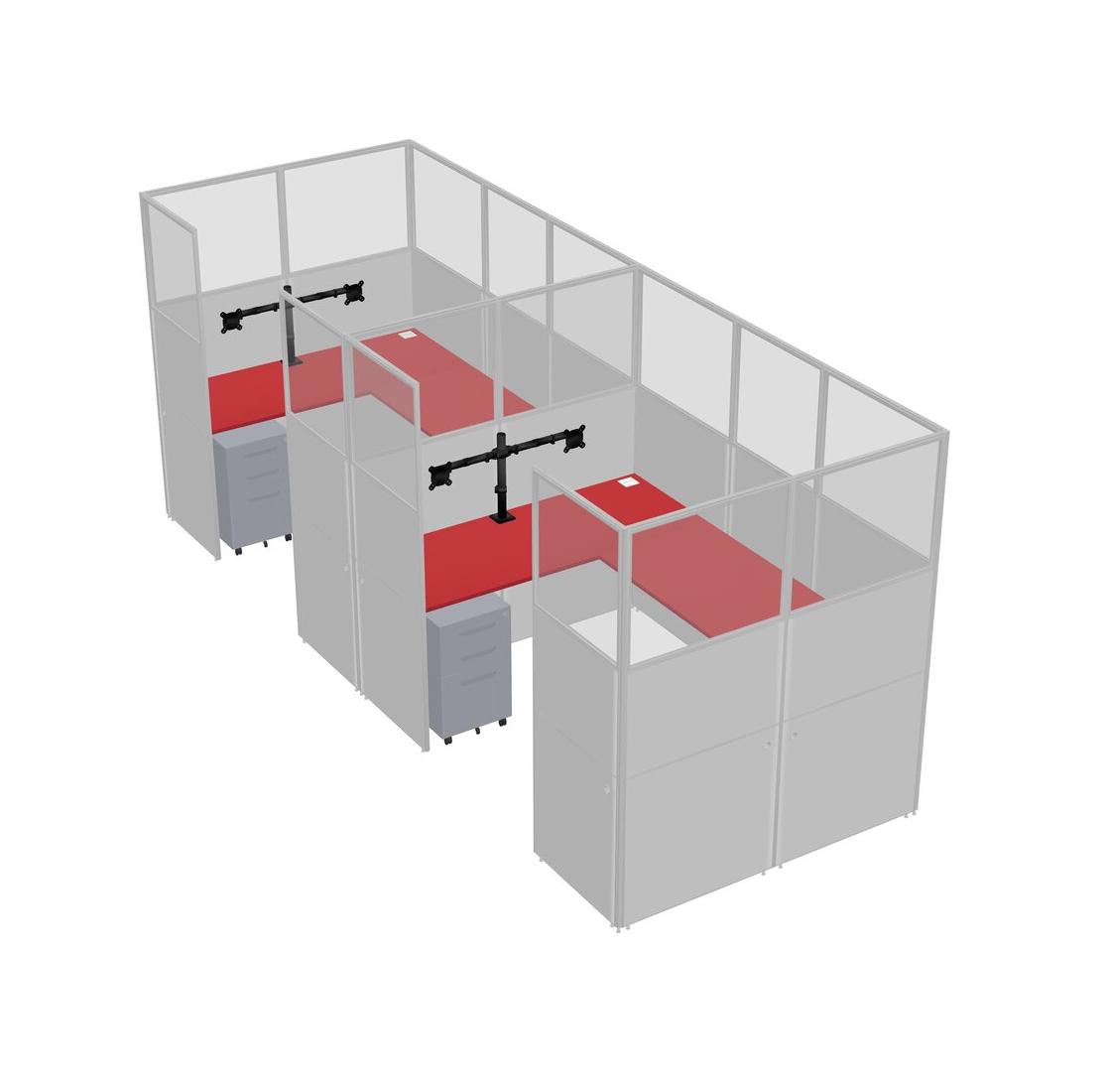 Prism Red U-shaped Panel System For 2 Person + Monitor Arm (double Arms) + Metal Mobile Drawers For 2 User(s)