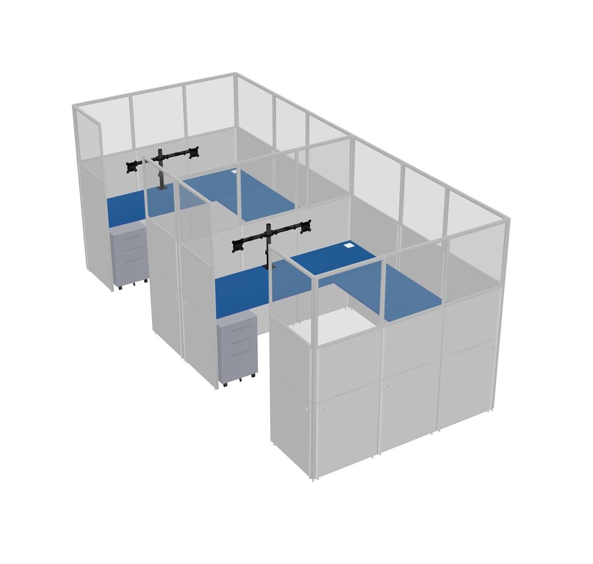 Prism Blue U-shaped Panel System For 2 Person + Monitor Arm (double Arms) + Metal Mobile Drawers For 2 User(s)