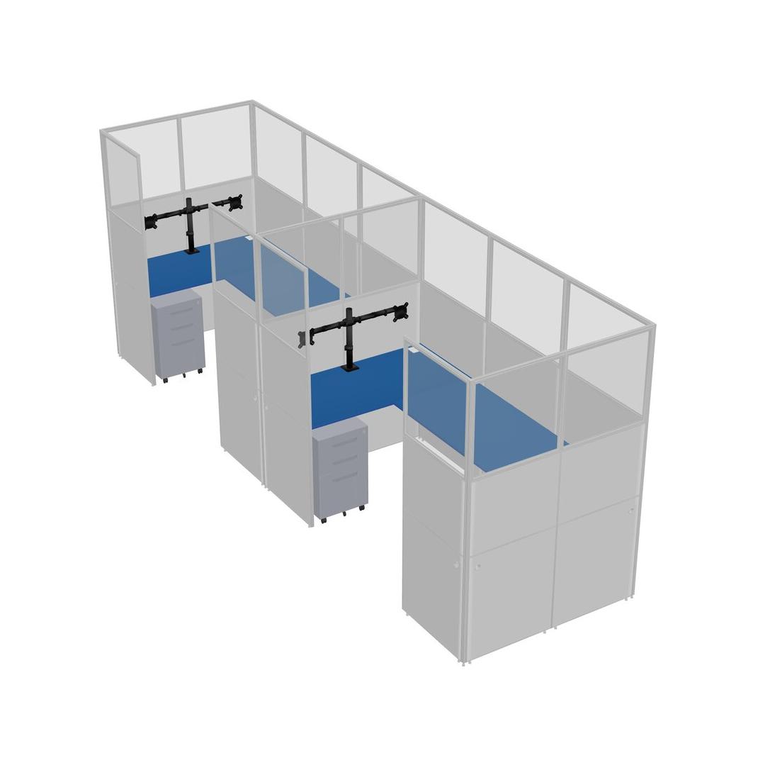 Prism Blue U-shaped Panel System For 2 Person + Monitor Arm (double Arms) + Metal Mobile Drawers For 2 User(s)