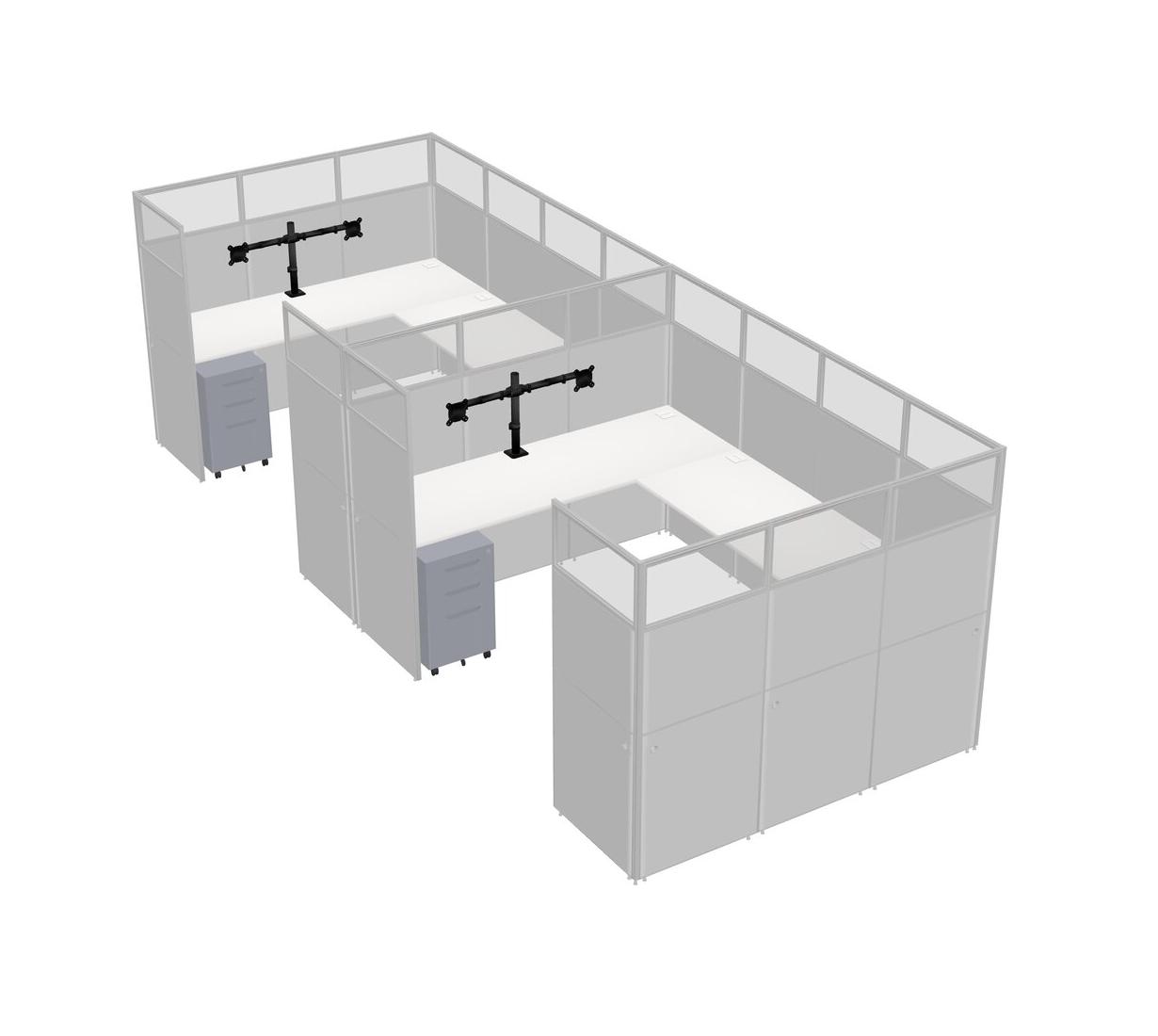 White U-shaped Panel System For 2 Person + Monitor Arm (double Arms) + Metal Mobile Drawers For 2 User(s)
