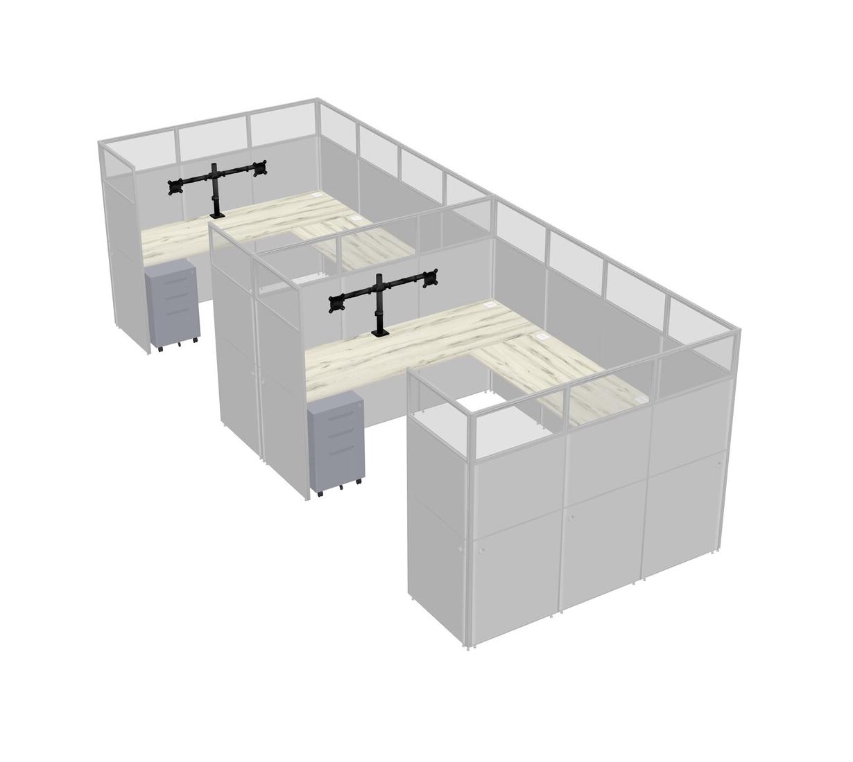 Heinne Holz U-shaped Panel System For 2 Person + Monitor Arm (double Arms) + Metal Mobile Drawers For 2 User(s)