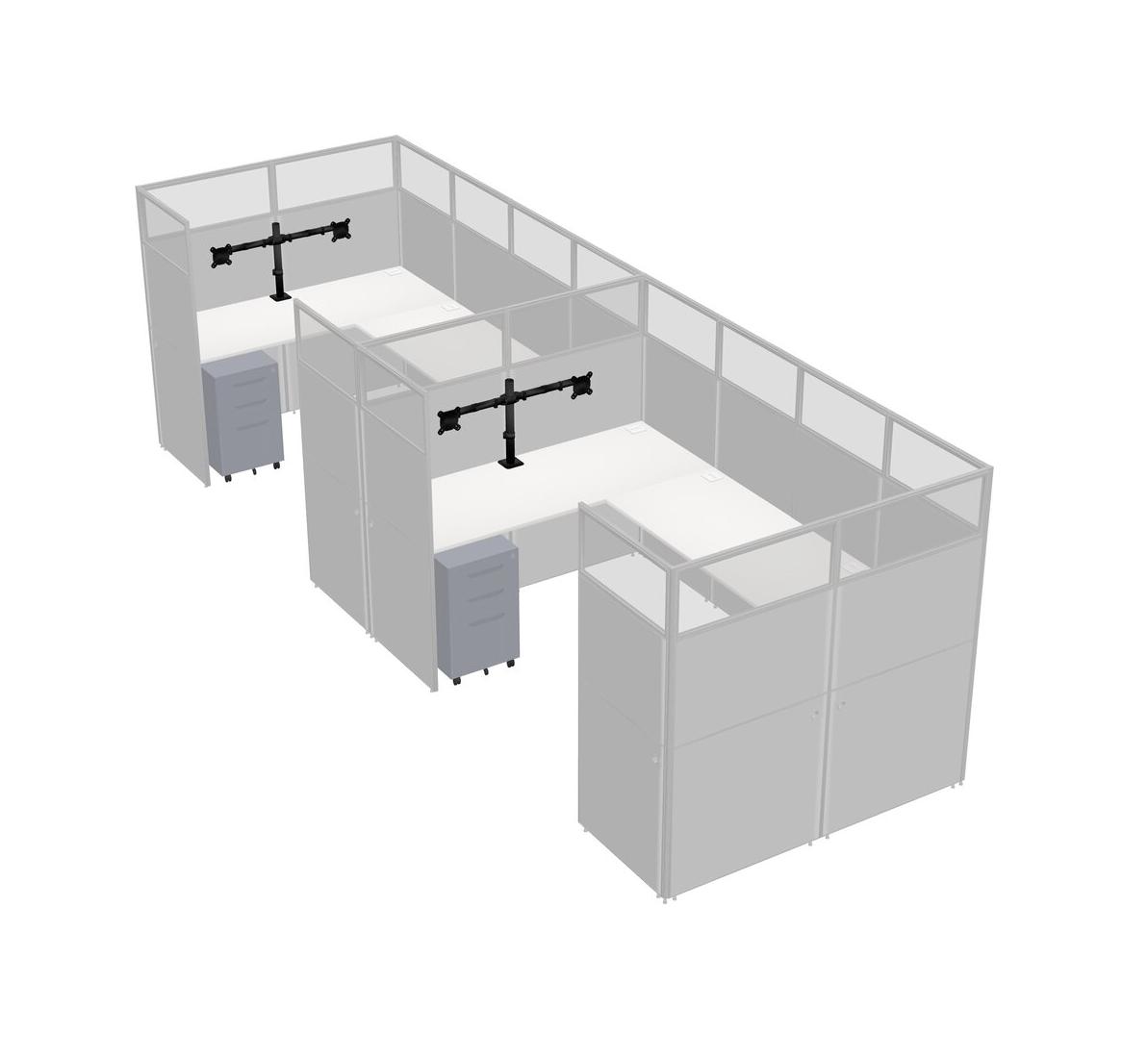 White U-shaped Panel System For 2 Person + Monitor Arm (double Arms) + Metal Mobile Drawers For 2 User(s)