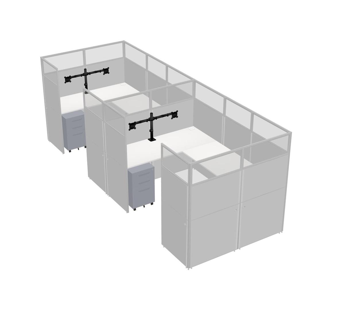 White U-shaped Panel System For 2 Person + Monitor Arm (double Arms) + Metal Mobile Drawers For 2 User(s)