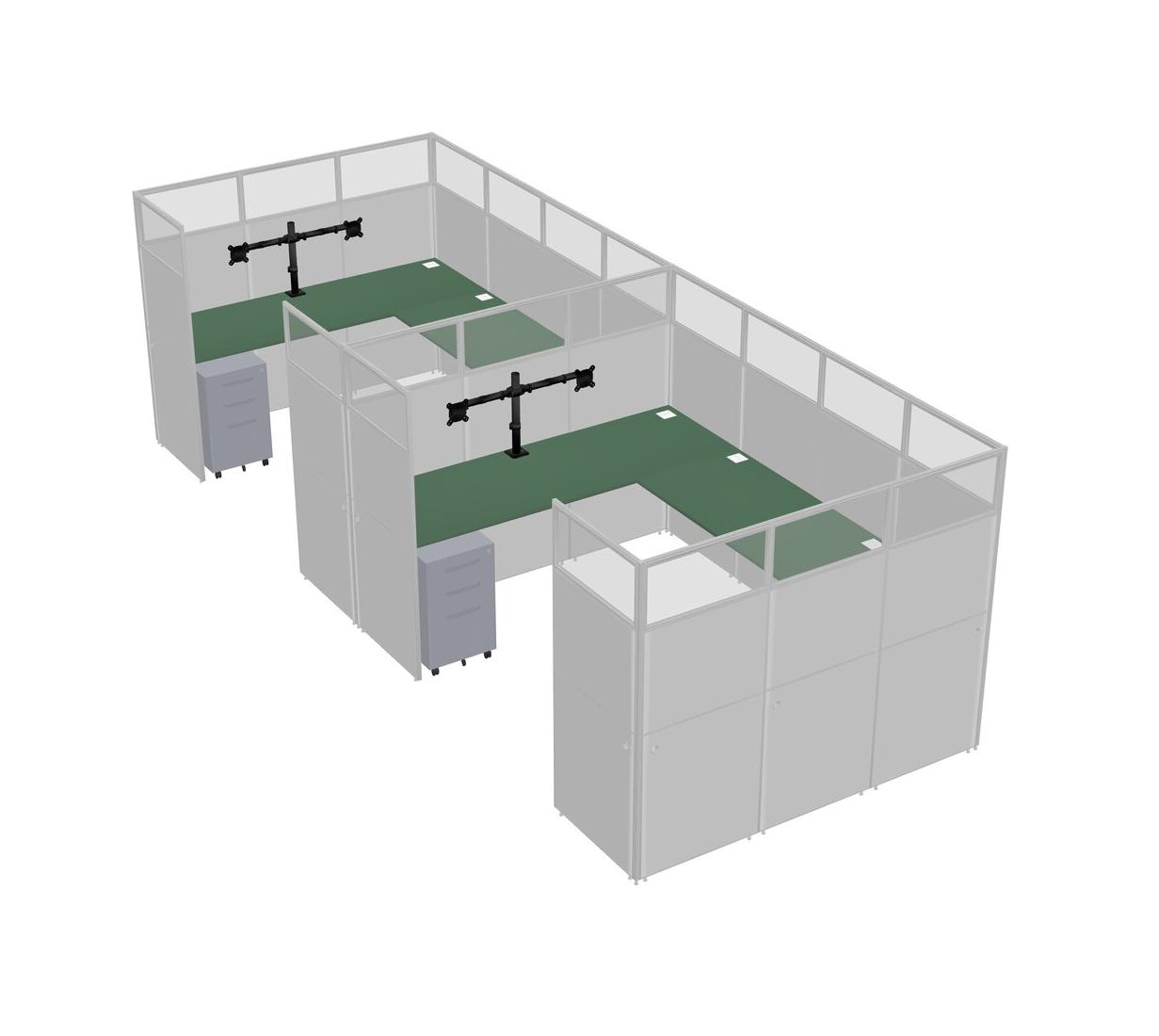 Green U-shaped Panel System For 2 Person + Monitor Arm (double Arms) + Metal Mobile Drawers For 2 User(s)