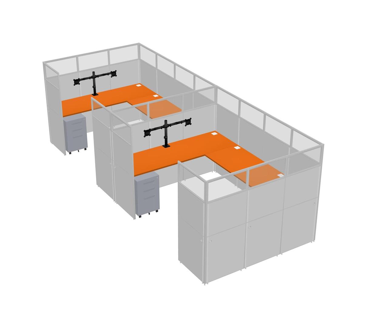 Orange U-shaped Panel System For 2 Person + Monitor Arm (double Arms) + Metal Mobile Drawers For 2 User(s)