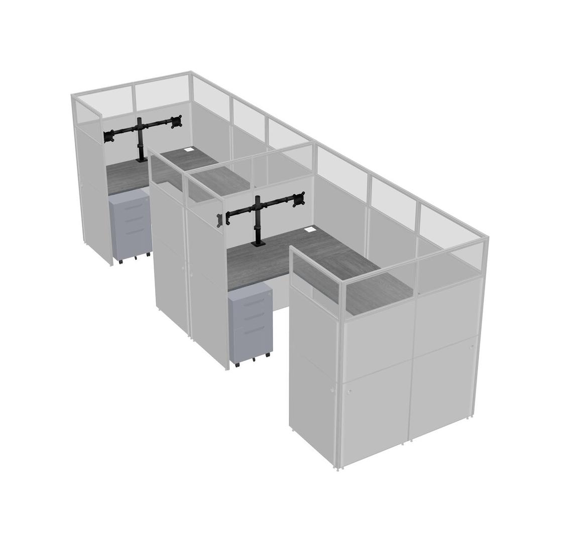 Grey U-shaped Panel System For 2 Person + Monitor Arm (double Arms) + Metal Mobile Drawers For 2 User(s)
