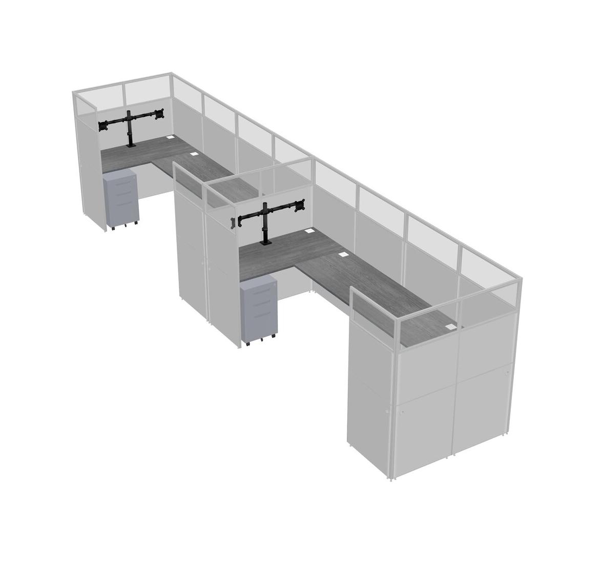 Grey U-shaped Panel System For 2 Person + Monitor Arm (double Arms) + Metal Mobile Drawers For 2 User(s)