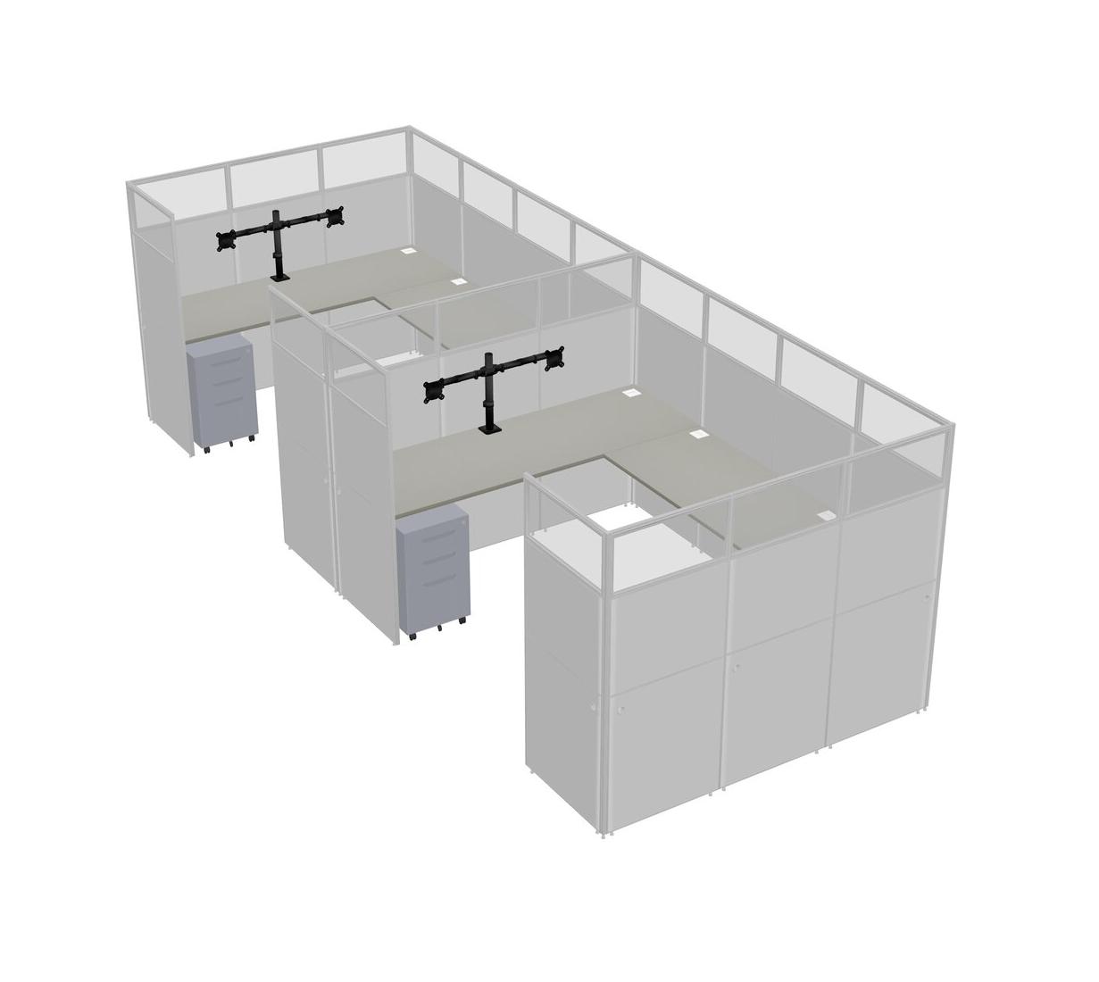 Grey Shadows U-shaped Panel System For 2 Person + Monitor Arm (double Arms) + Metal Mobile Drawers For 2 User(s)