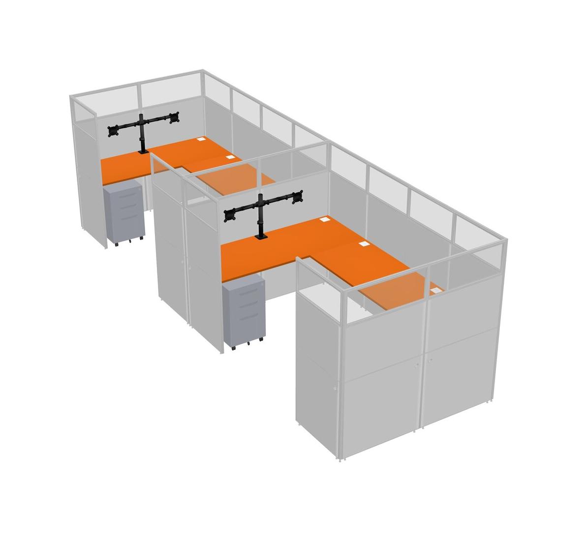 Orange U-shaped Panel System For 2 Person + Monitor Arm (double Arms) + Metal Mobile Drawers For 2 User(s)