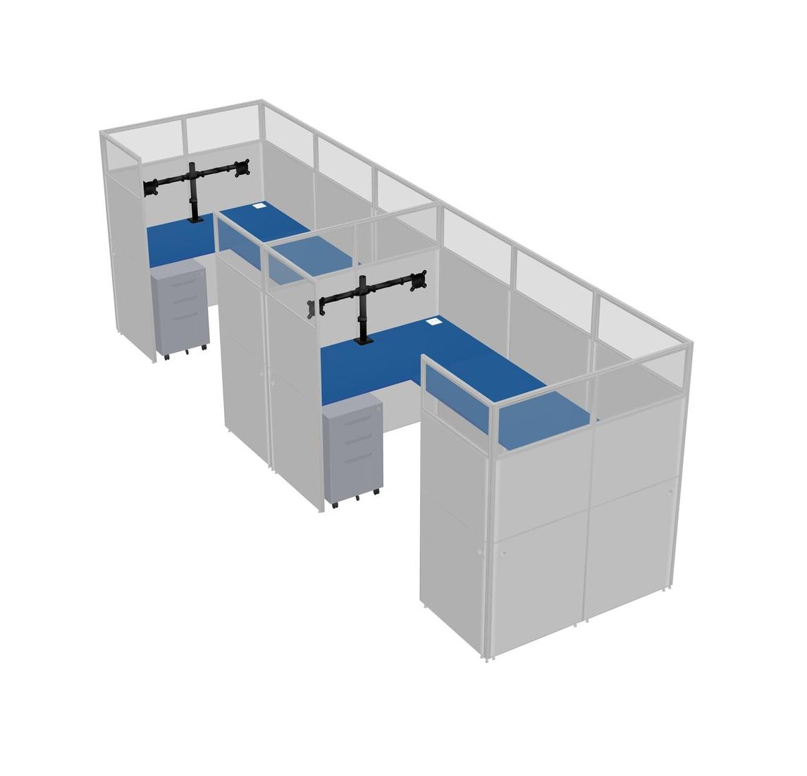 Prism Blue U-shaped Panel System For 2 Person + Monitor Arm (double Arms) + Metal Mobile Drawers For 2 User(s)