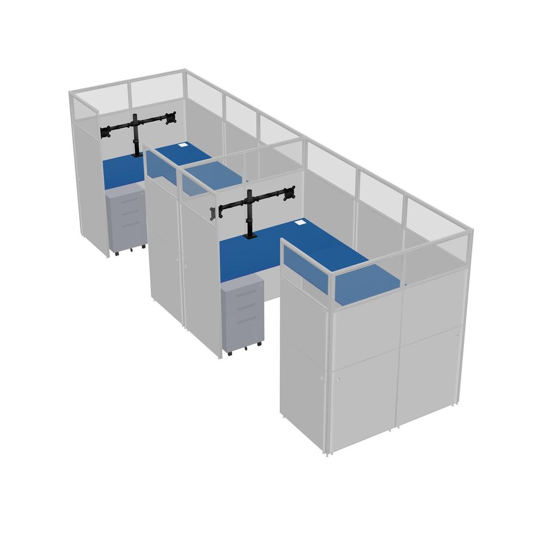Prism Blue U-shaped Panel System For 2 Person + Monitor Arm (double Arms) + Metal Mobile Drawers For 2 User(s)