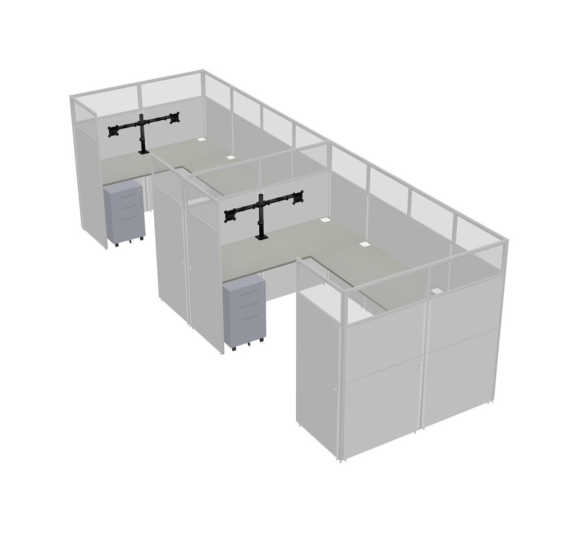 Grey Shadows U-shaped Panel System For 2 Person + Monitor Arm (double Arms) + Metal Mobile Drawers For 2 User(s)
