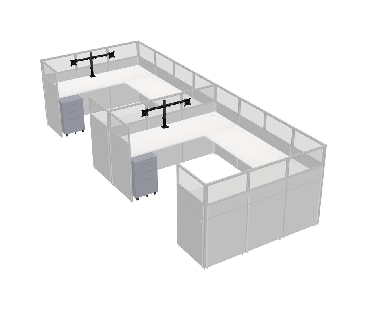 White U-shaped Panel System For 2 Person + Monitor Arm (double Arms) + Metal Mobile Drawers For 2 User(s)