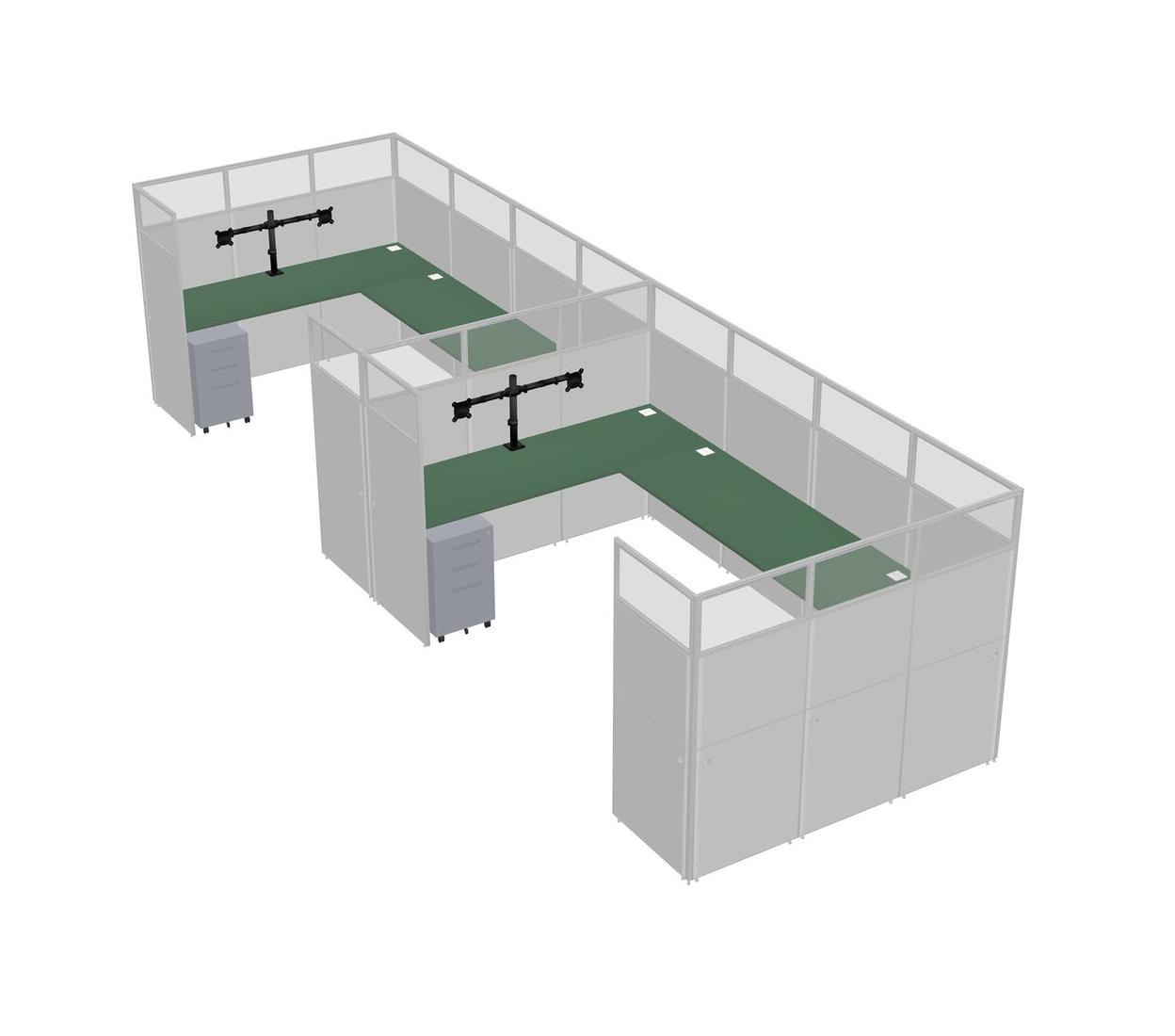Green U-shaped Panel System For 2 Person + Monitor Arm (double Arms) + Metal Mobile Drawers For 2 User(s)