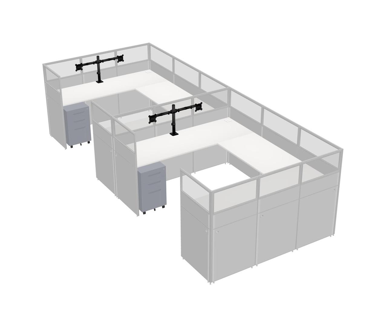 White U-shaped Panel System For 2 Person + Monitor Arm (double Arms) + Metal Mobile Drawers For 2 User(s)