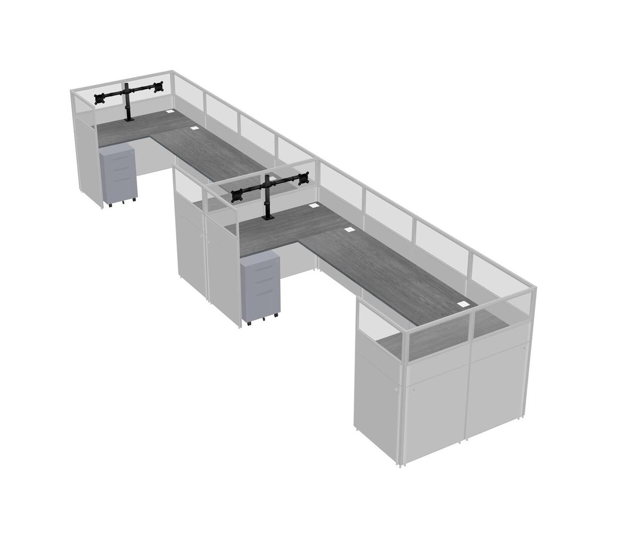 Grey U-shaped Panel System For 2 Person + Monitor Arm (double Arms) + Metal Mobile Drawers For 2 User(s)