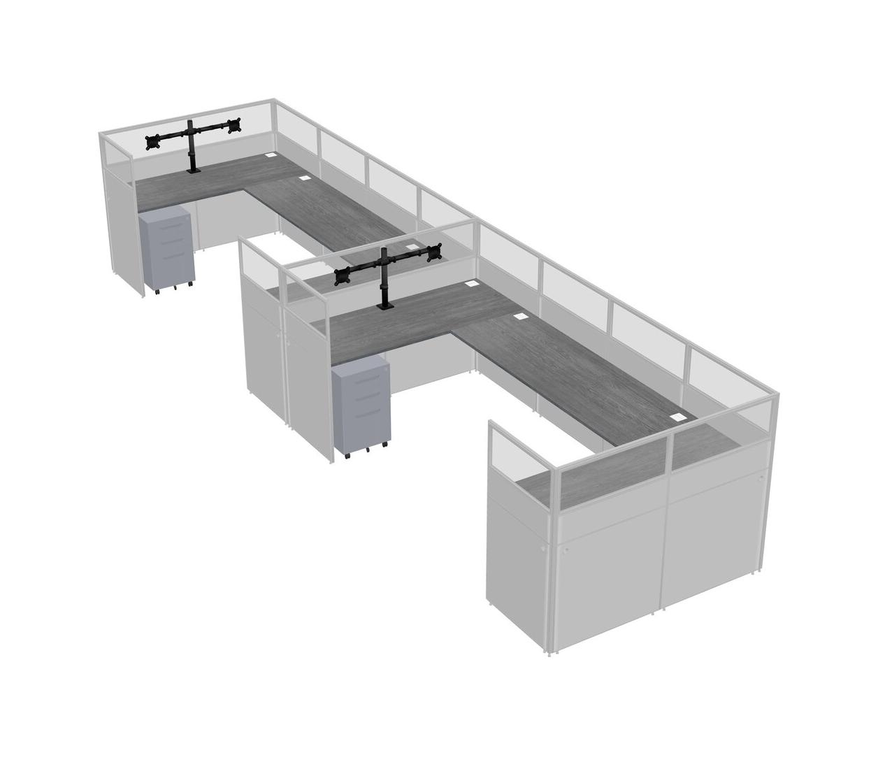 Grey U-shaped Panel System For 2 Person + Monitor Arm (double Arms) + Metal Mobile Drawers For 2 User(s)