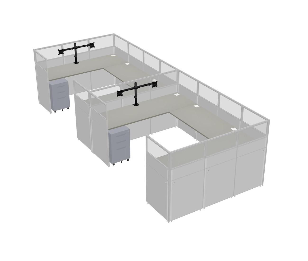 Grey Shadows U-shaped Panel System For 2 Person + Monitor Arm (double Arms) + Metal Mobile Drawers For 2 User(s)