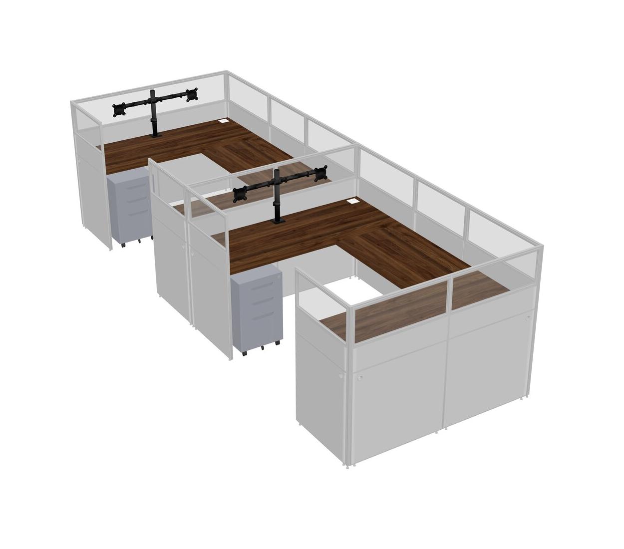 Columbia Walnut U-shaped Panel System For 2 Person + Monitor Arm (double Arms) + Metal Mobile Drawers For 2 User(s)
