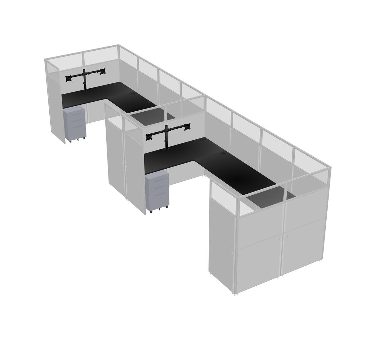 Black U-shaped Panel System For 2 Person + Monitor Arm (double Arms) + Metal Mobile Drawers For 2 User(s)
