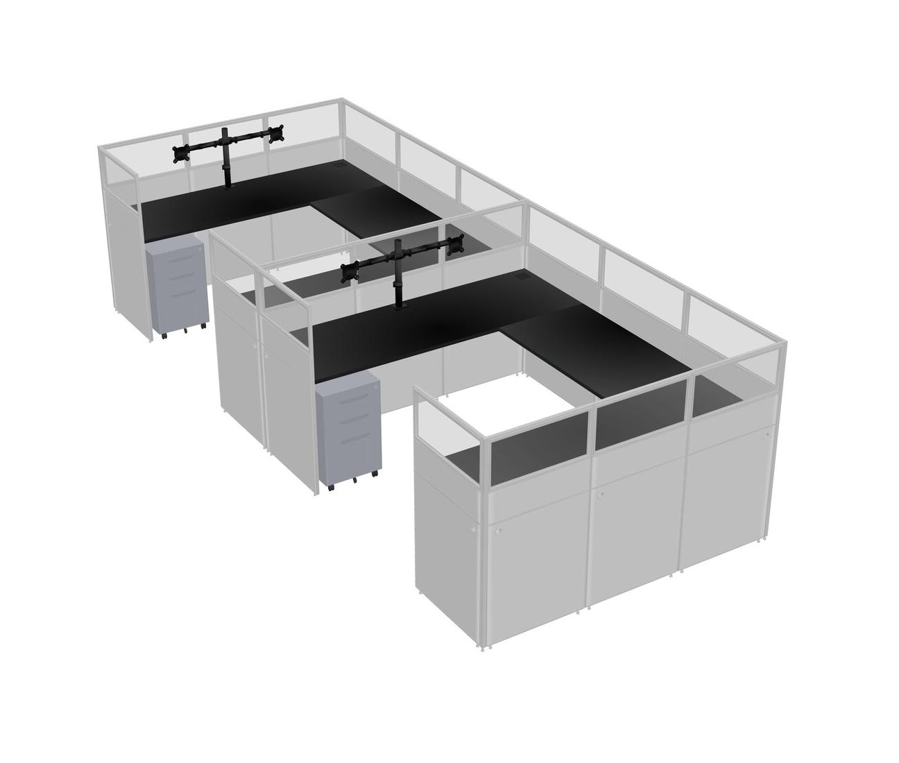 Black U-shaped Panel System For 2 Person + Monitor Arm (double Arms) + Metal Mobile Drawers For 2 User(s)