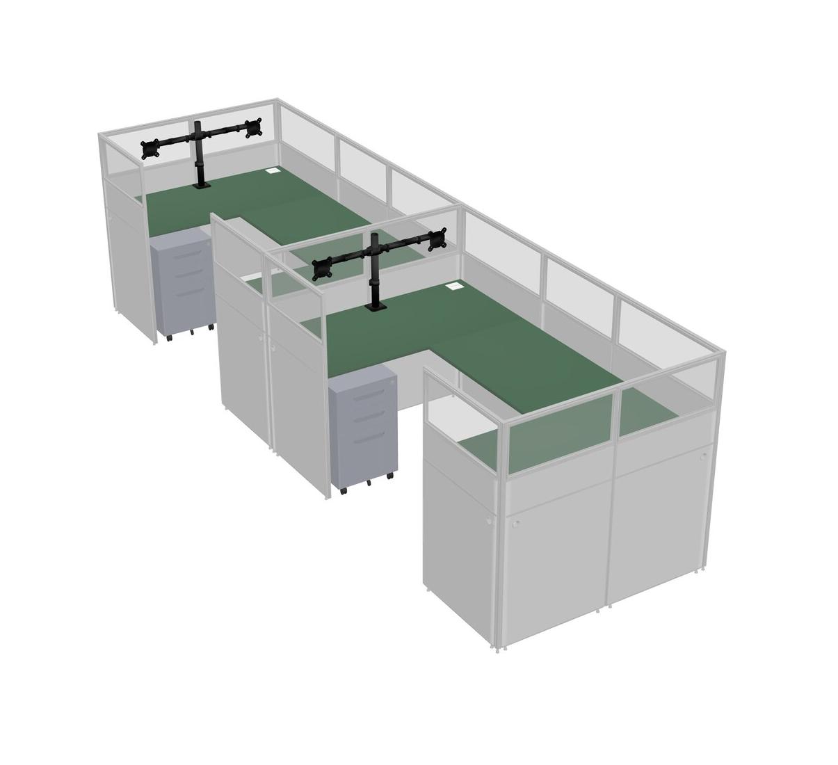 Green U-shaped Panel System For 2 Person + Monitor Arm (double Arms) + Metal Mobile Drawers For 2 User(s)