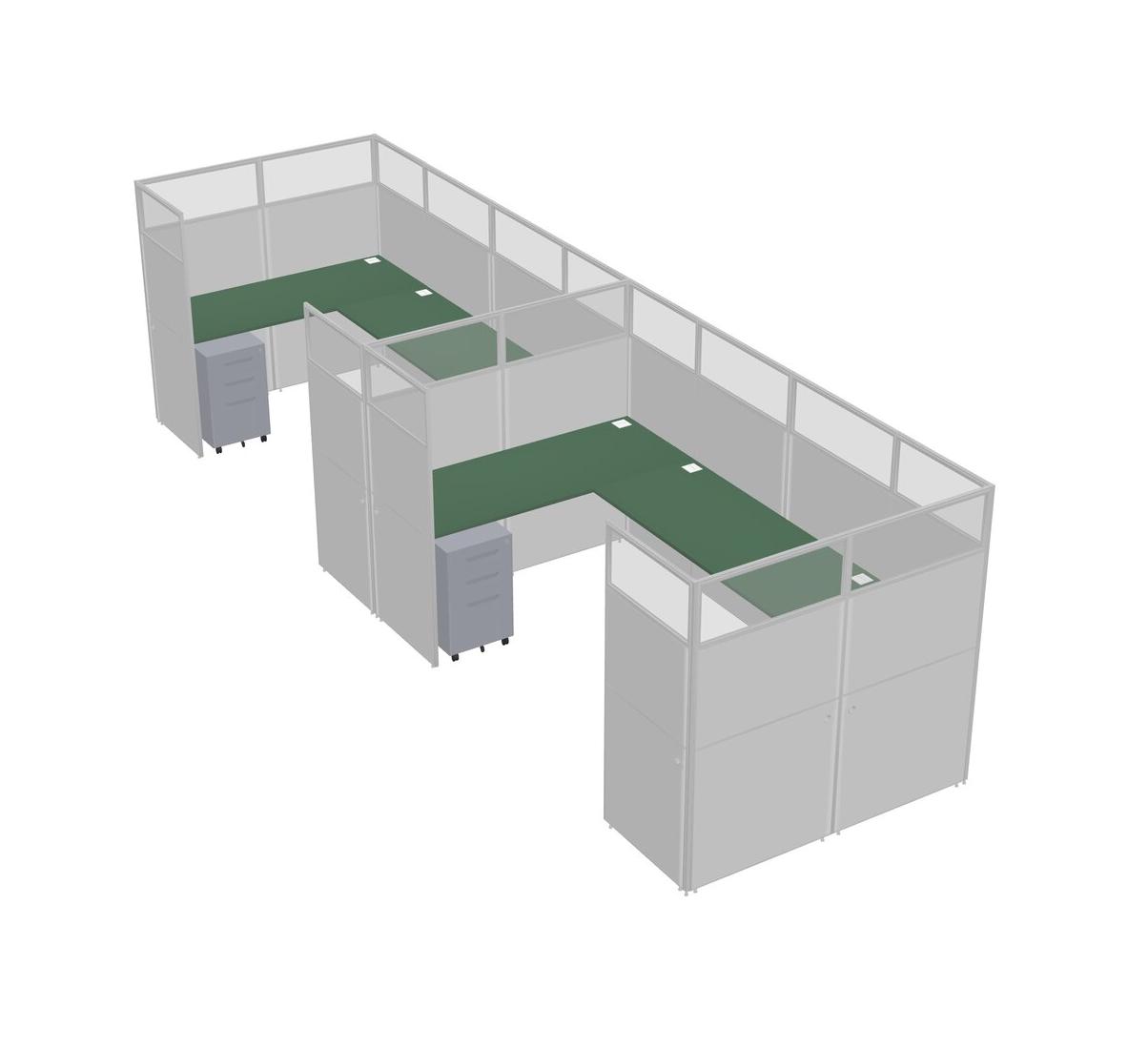 Green U-shaped Panel System For 2 Person + Metal Mobile Drawers For 2 User(s)