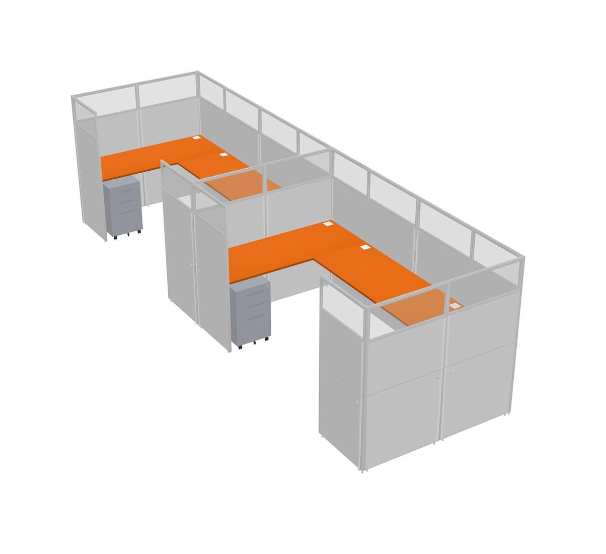 Orange U-shaped Panel System For 2 Person + Metal Mobile Drawers For 2 User(s)
